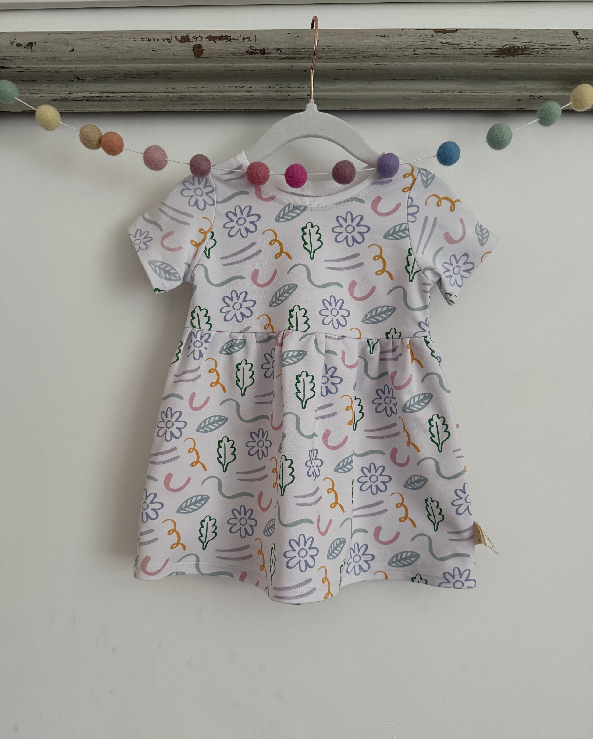This EXCLUSIVE (designed for us) floral design children’s dress is handmade made using stretch ORGANIC fabric. The jersey fabric is slightly thicker giving the dress more shape. Perfect for summer or winter playing and having all sorts of adventures. Any flower enthusiasts would love this. Organic fabric is kinder on precious skin because as it doesn’t contain a vast amount of nasty chemicals and is a better option for the environment.