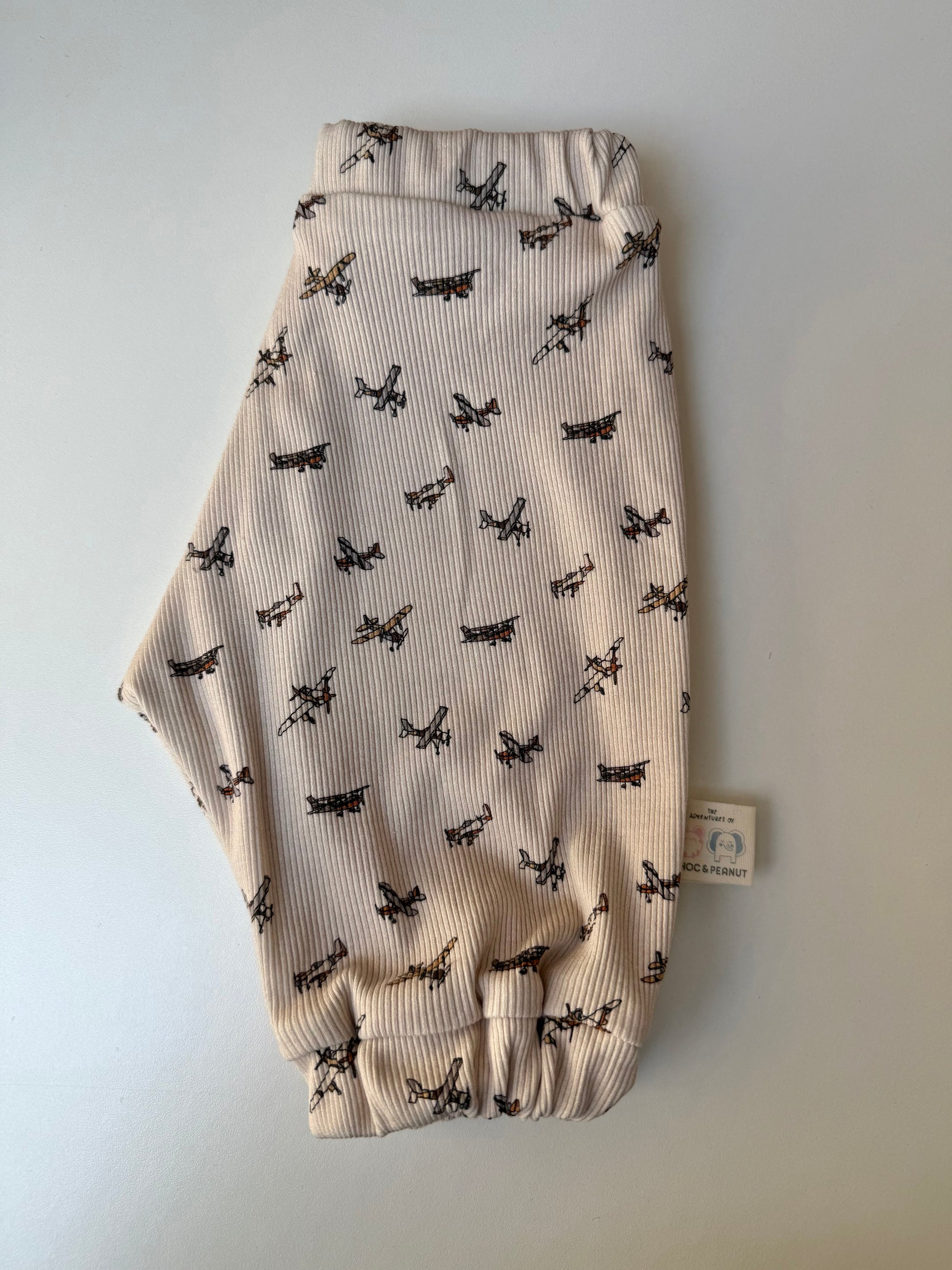 These super cosy Plane sweatpants are made from really light OEKO-TEX certified rib knit fabric, which is kinder in skin and better for the environment. They have an elasticated waist and cuffs to stretch with your little one. They are roomy and perfect for any playtime.