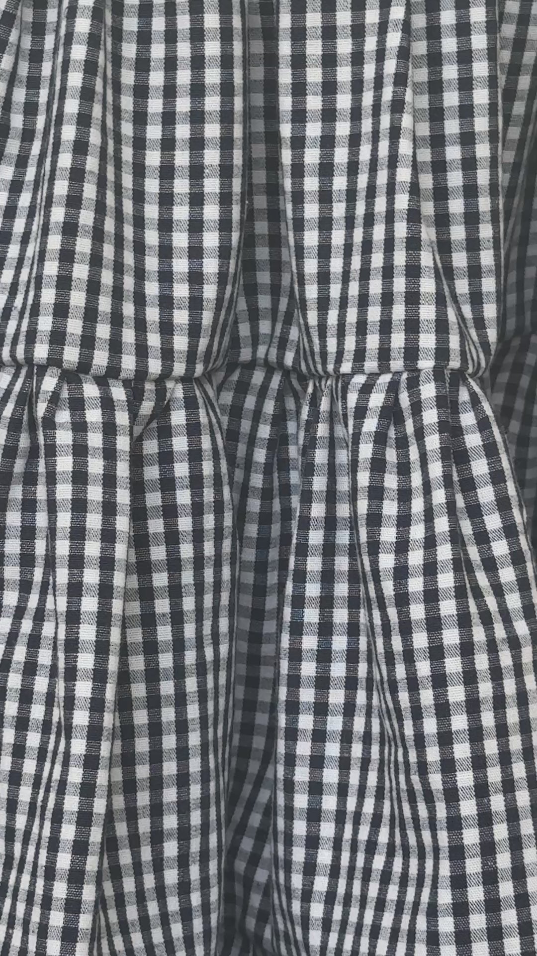 This light and airy Navy Gingham tiered dress is made of 100% cotton. Soft and smooth against the skin with no nasty chemicals and a much better option in terms of the environment. It has long straps so it can be tied as tight or as loose as you like in bows making it versatile and therefore lasts longer.