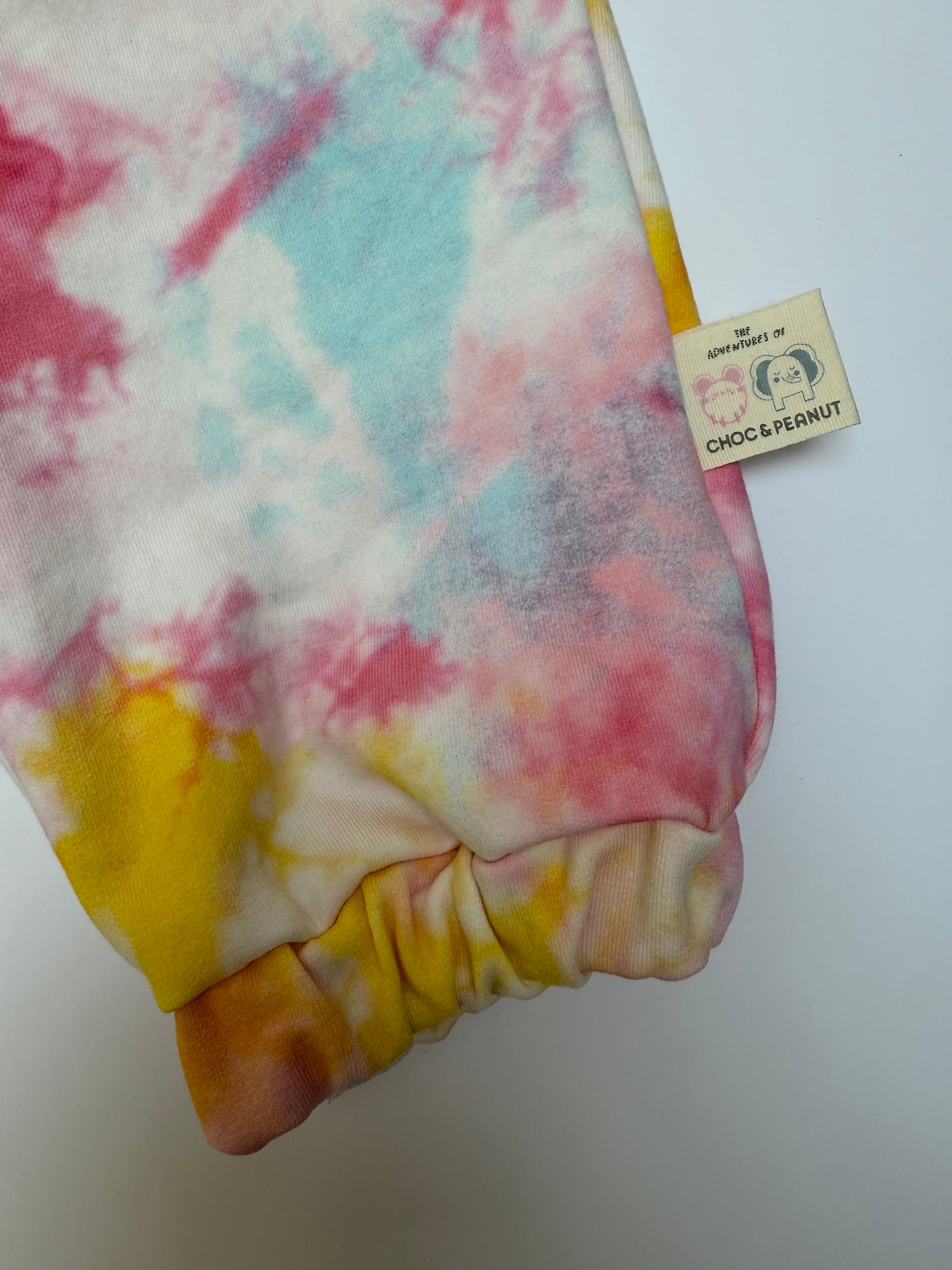 These super cosy Tie Dye sweatpants are made from OEKO-TEX certified fabric which is kinder in skin and better for the environment. They have an elasticated waist and cuffs to stretch with your little one. They are roomy and perfect for any playtime.